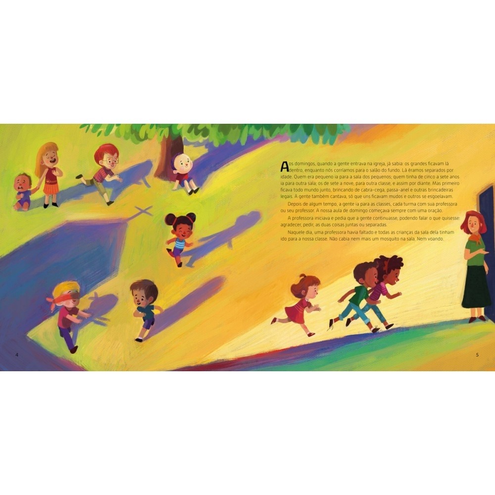 Durante anos, fui monitora nas aulas de ensino bíblico na igreja que frequentava. Eram grupos pequenos, então pude conviver com as crianças mais de perto. Suas orações, seus desenhos e observações foram se tornando cada vez mais especiais para mim. Neste texto, a história gira em torno de Marcos, um menino que, com suas atitudes singelas, consegue espalhar alegria e amor ao próximo, seja ele como for. Alguns fatos são reais, outros não. Escrever é isso! Trazer acontecimentos de volta à memória, acrescentar camadas, contextualizar histórias passadas num tempo tão antigo para a nossa época contemporânea. Fazer isso e ainda poder falar do amor que Deus tem por nós é muito bom! Editora: Ciranda na Escola Edição: 1, 2024 Autor: Telma Guimarães Ilustrador: Elton Caetano Idioma: Português Páginas: 48 Dimensões: L 24.00 x A 24.00 x E 0.33 ISBN: 9786553844049 Coleção: Não se aplica Linha Editorial: Ciranda na Escola - Literatura infantojuvenil Faixa Etária: + 6 anos Assuntos (tags): Jesus, Comunidade, Comportamento, Empatia, Ensinamentos, Inclusão, Cristianismo BISAC: Literatura Infantil / Temas Sociais / Religião & Fé Linha de Produto: Literatura infantil Encadernação: Brochura Acabamento: Laminação fosca Material: Papel