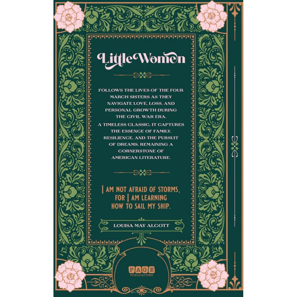 Little Women is a timeless classic that follows the lives of the four March sistersMeg,Jo, Beth, and Amyas they navigate the challenges of growing up in 19th-centuryAmerica. Through love, loss, and personal growth, each sister forges her own path,with dreams and struggles unique to her character. Louisa May Alcotts masterpieceexplores themes of family, independence, and the pursuit of happiness, offering atouching reflection on the bonds that unite us. Editora: Page Publications Edição: 1, 2024 Autor: Louisa May Alcott Idioma: Inglês Páginas: 564 Dimensões: L 15.70 x A 24.20 x E 1.50 ISBN: 9781648338045 Coleção: Classics Linha Editorial: W. Books - Clássicos Faixa Etária: + 12 anos Assuntos (tags): Ação, Aventura, Inglaterra, Família, Amor, Escrita BISAC: Ficção / Ficção / Ação e Aventura Linha de Produto: W. Books Encadernação: Capa dura Acabamento: Fitilho Material: Papel