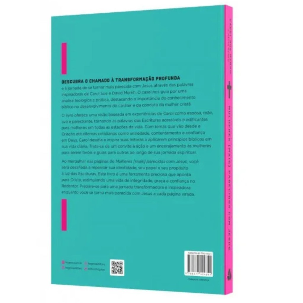 Descubra o chamado à transformação profunda e à jornada de se tornar mais parecida com Jesus nas palavras inspiradoras de Carol Sue e David Merkh. Este livro singular é uma obra que transcende as barreiras do conhecimento teológico, oferecendo uma análise prática e profunda da jornada da mulher cristã em direção à reflexão do caráter e conduta do Filho de Deus. O casal Merkh guia os leitores por uma exploração teológica, ressaltando a importância do conhecimento bíblico no desenvolvimento do caráter e da conduta da mulher cristã. Carol Sue Merkh, com suas experiências como esposa, mãe, avó e palestrante, torna as palavras das Escrituras acessíveis e edificantes para mulheres em todas as estações da vida. Mulheres Mais Parecidas com Jesus abrange uma ampla gama de temas, desde a narrativa da Criação até dilemas cotidianos como ansiedade, contentamento e confiança em Deus. Carol desafia e inspira suas leitoras a aplicarem princípios bíblicos em sua vida diária, transformando teoria em prática em cada capítulo. Este livro é um convite à ação, encorajando as mulheres a se tornarem faróis e guias para outras ao longo de sua jornada espiritual. Ao mergulhar nas páginas deste livro, você será desafiada a repensar sua identidade, seu papel e seu propósito à luz das Escrituras. Mulheres Mais Parecidas com Jesus não é apenas uma leitura; é uma ferramenta preciosa que aponta para Cristo, estimulando uma vida de integridade, graça e confiança no Redentor. Prepare-se para uma jornada transformadora e inspiradora enquanto cada página virada revela insights profundos e orientações práticas para se tornar mais parecida com Jesus. Este livro é mais do que um guia; é um companheiro fiel na busca por uma vida cristã autêntica. Detalhes do Produto : Autor: Carol Sue Merkh Autor: David Merkh Editora: 300g Páginas: 272 Formato: 16x23 Cm Acabamento: Brochura