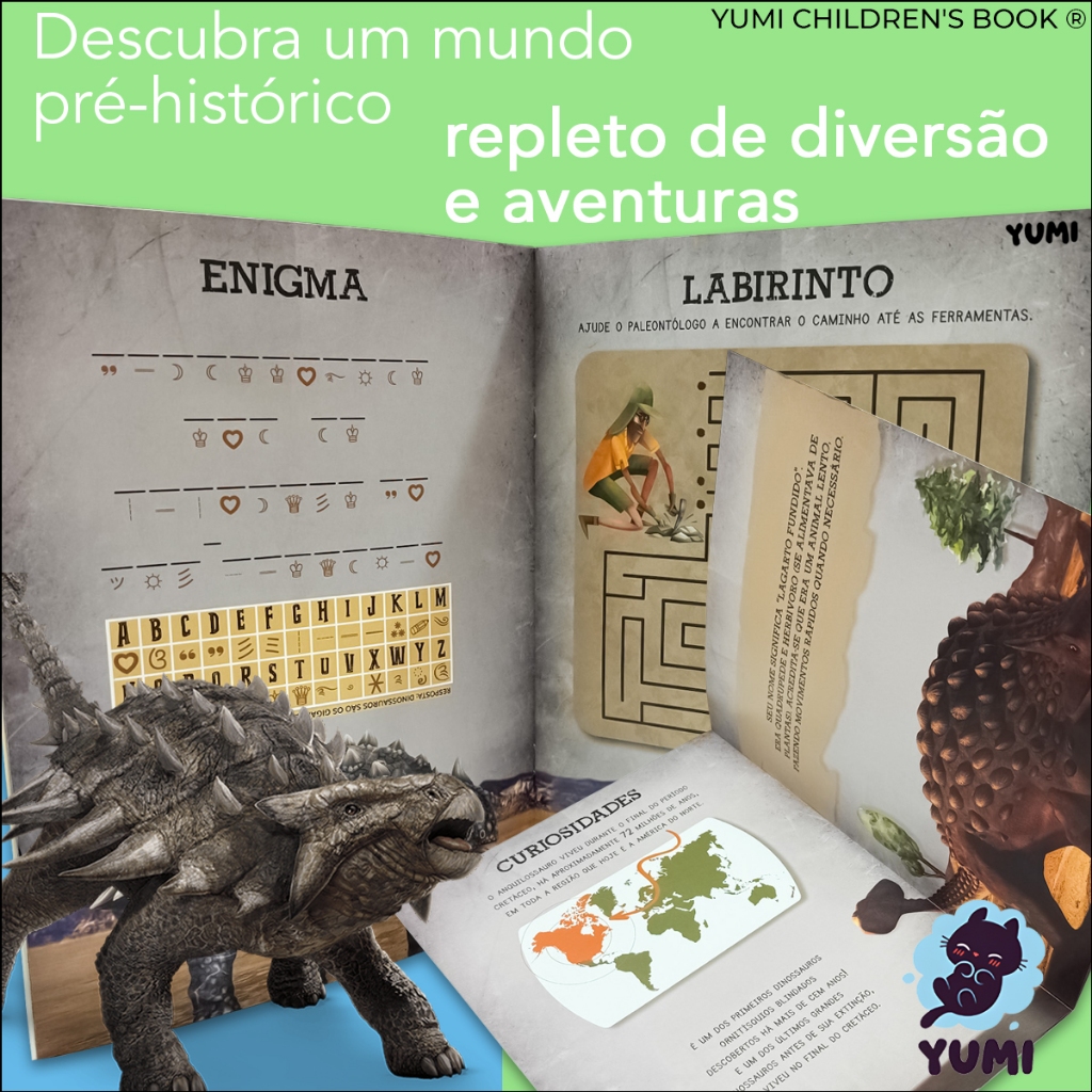 Livro Mundo Dos Dinossauros + Dinossauro Brinquedo Anquilossauro Colecionável Articulado E Realista