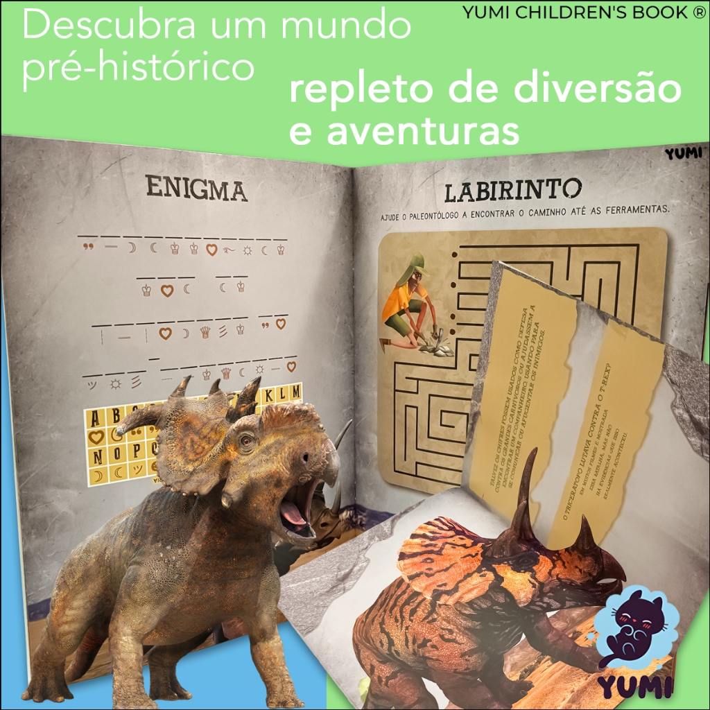 Livro Mundo Dos Dinossauros + Dinossauro Brinquedo Tricerátopo Tricerátops Colecionável Articulado E Realista