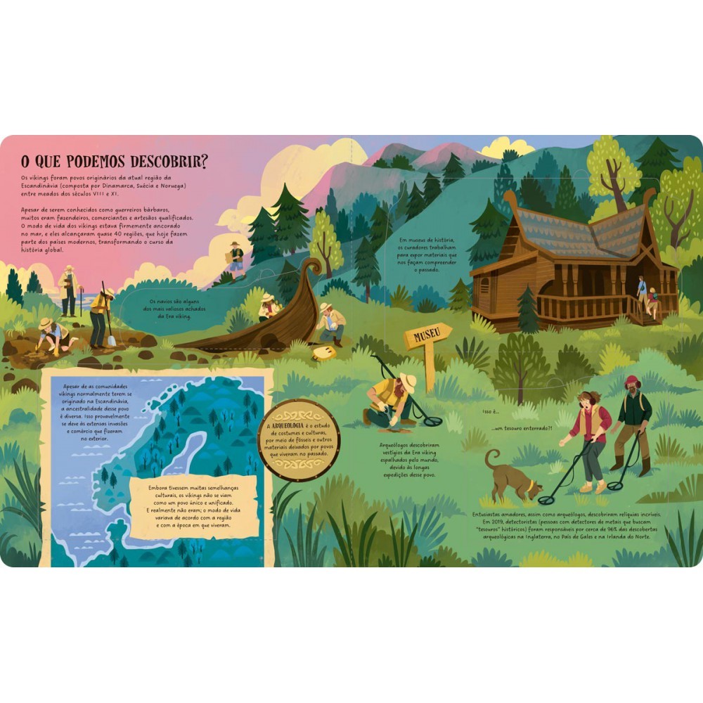 Como os vikings viajaram para lugares tão distantes, como os atuais Canadá e Bagdá? Por que os guerreiro temíveis eram chamados de berserkers? E o que o dia do juíxo final tem a ver com a higiene da unhas? Venhas descobrir a verdade por trás de algumas das mais incríveis histórias e superstições vikings, e desenterrar aspectos fascinantes com este livro envolvente, que vem com abas em cada página. Há muito para descobrir! Editora: Ciranda Cultural Edição: 1, 2025 Autor: Harriet Evans Ilustrador: Chaaya Prabhat Idioma: Português Páginas: 12 Dimensões: L 26.50 x A 32.50 x E 1.80 ISBN: 9786526123324 Coleção: Conhecendo a História Linha Editorial: Ciranda Cultural - Coedição Faixa Etária: + 6 anos Assuntos (tags): História, Conhecimento, Viking, Descoberta, Abas, Interativo, Colorido, Livro presente, Educação, Educação infantil, Curiosidade, Aprendizagem, Presente, Escola BISAC: Não Ficção Infantil / Não Ficção Infantil / História Linha de Produto: Abas Encadernação: Lombada quadrada Acabamento: Hot stamping Material: Cartonado