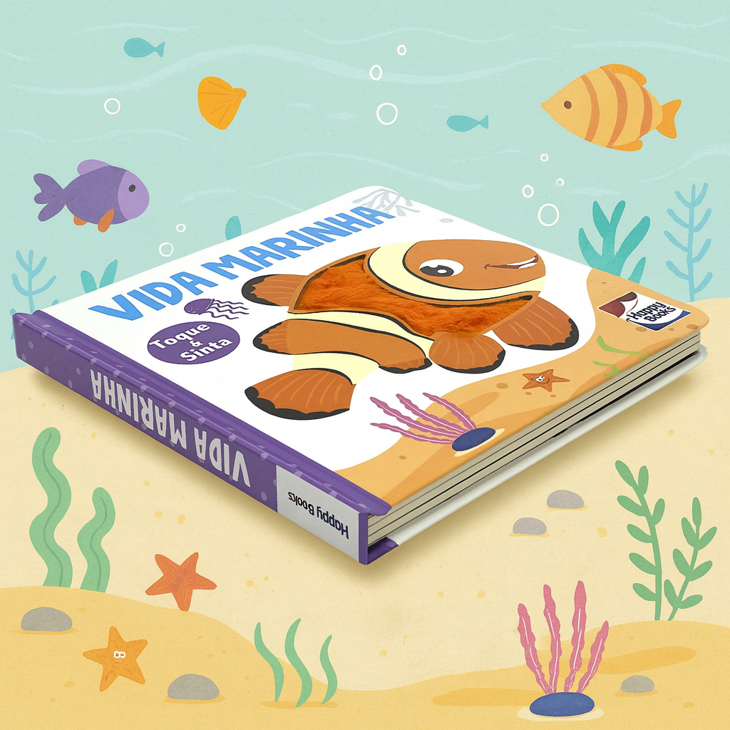 Livro Para Bebê de Texturas Animais Vida Marinha - Livro Sensorial Toque E Sinta Premium