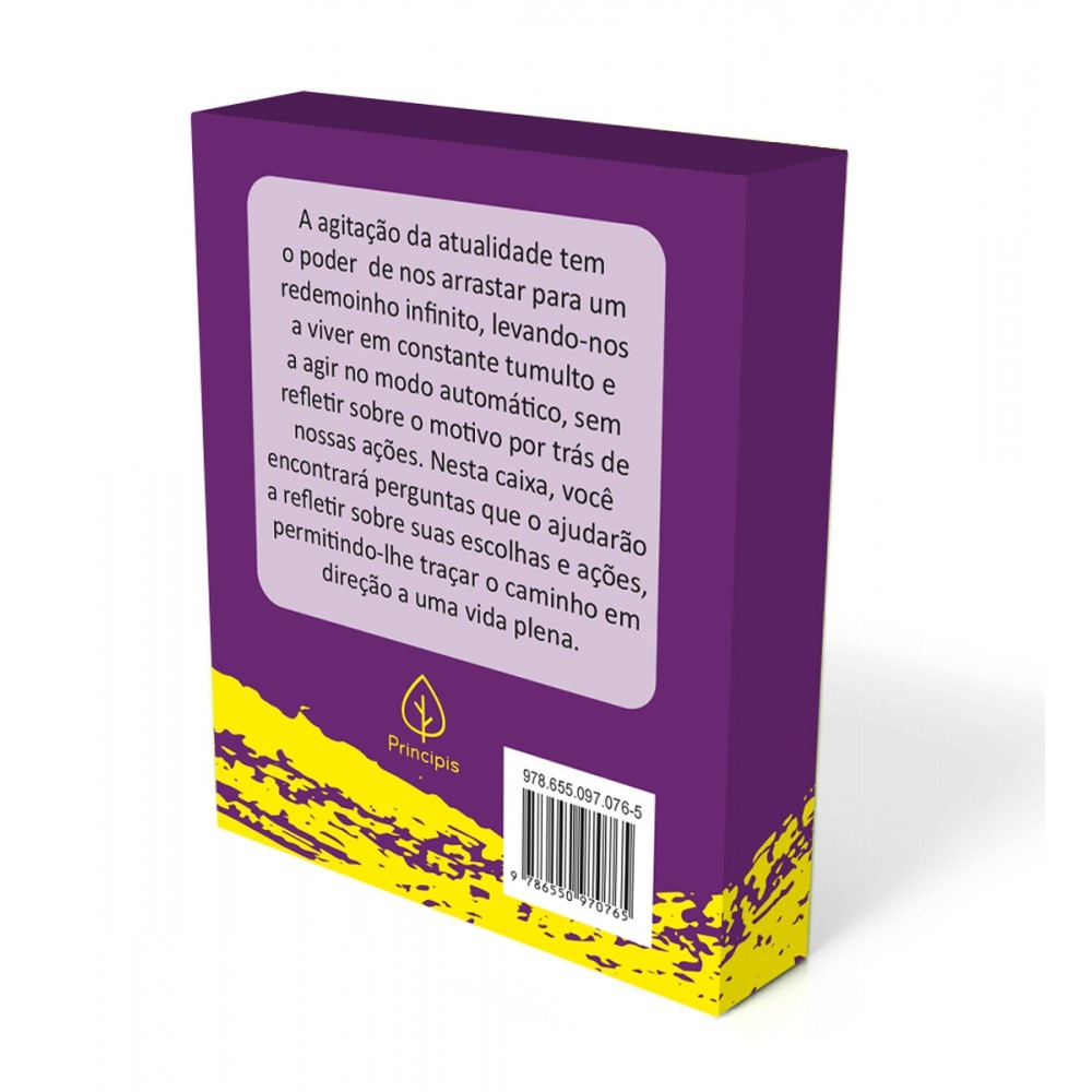 A agitação da atualidade temo poder de nos arrastar para um redemoinho infinito, levando-nos a viver em constante tumulto e a agir no modo automático, sem refletir sobre o motivo por trás de nossas ações. Nesta caixa, você encontrará perguntas que o ajudarão a refletir sobre suas escolhas e ações, permitindo-lhe traçar o caminho em direção a uma vida plena. Editora: Principis Edição: 1, 2023 Autor: Donaldo Buchweitz Idioma: Português Páginas: 200 Dimensões: L 7.00 x A 9.00 x E 2.60 ISBN: 9786550970765 Coleção: Não se aplica Linha Editorial: Principis - Desenvolvimento pessoal Faixa Etária: + 14 anos Assuntos (tags): Brasil, Autoajuda, Motivação, Reflexão, Inspiração, Comportamento BISAC: Autoajuda / Motivacional Linha de Produto: Caixa cards Encadernação: Não se aplica Acabamento: Laminação brilho Material: Papel