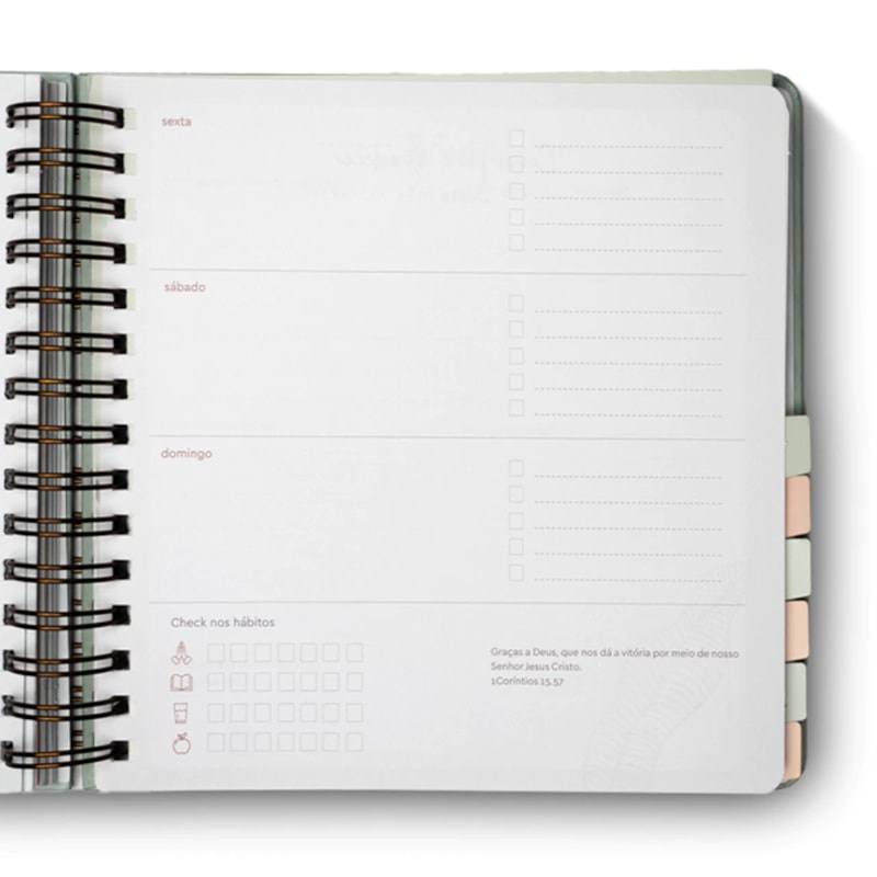 Livro Planner Florescer| Capa Dura Cultivando Sua Vida Com Fé e Organização O Planner Florescer une organização, fé e inspiração em um design floral delicado. Com espiral resistente, é perfeito para planejar sua rotina e jornada espiritual com beleza e propósito. Devocionais Mensais: Reflexões profundas e motivadoras no início de cada mês, com passagens bíblicas e perguntas para meditação e introspecção. Planejamento Completo: Visão mensal e semanal para organização de compromissos, metas e atividades importantes. Checklist de Leitura Bíblica: Um guia para acompanhar a leitura da Bíblia ao longo do ano, marcando os capítulos já lidos e incentivando a consistência no estudo das Escrituras. Monitoramento de Hábitos: Registre e acompanhe suas rotinas diárias para criar hábitos saudáveis e consistentes. Registro de Orações: Páginas dedicadas para anotar pedidos, respostas e agradecimentos, ajudando a manter uma vida de oração organizada. Controle Financeiro: Planeje e registre seus gastos mensais com praticidade. Espaço para Anotações e Reflexões: Ideal para pensamentos, ideias e aprendizados ao longo do ano. Listas Criativas: Registre filmes, séries, livros lidos e atividades culturais para equilibrar trabalho, lazer e espiritualidade. Especificações do livro Planner Florescer Título: Planner Florescer Subtítulo: Cultivando Sua Vida Com Fé e Organização Ano de Edição: 2024 Capa: Dura Acabamento: Laminação Fosca Miolo: Offset Dimensões: 23 x 25.5 x 20.7 cm Peso: 0,740 kg ISBN: 9786599876257 Editora: O Verso da Vida