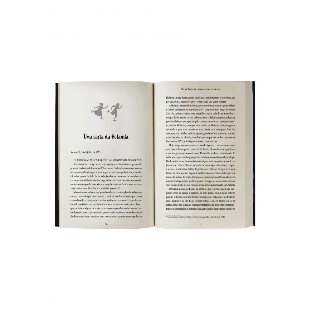 Um relato triunfante da bondade sobre este livro traz duas histórias em uma. A principal é sobre Hans e Gretel, dois irmãos que enfrentam muitas dificuldades, mas nem por isso deixam de sonhar e de buscar seus sonhos. A história paralela é sobre um garoto inglês, Ben Dobbs, que se junta a seus novos amigos em uma excursão de patinação em Amsterdã. Com mensagem compassiva e empática, o livro, publicado em 1865, tornou-se um verdadeiro clássico para leitores de todas as idades ao contar a história de uma família unida, apesar das dificuldades, e de desejos concedidos na hora certa. Editora: Principis Edição: 1, 2025 Autor: Mary Mapes Dodge Idioma: Português Páginas: 288 Dimensões: L 15.40 x A 22.50 x E 1.60 ISBN: 9786550972479 Coleção: Clássicos da literatura mundial Linha Editorial: Principis - Clássicos da literatura Faixa Etária: + 12 anos Assuntos (tags): Clássicos da literatura , Literatura infantojuvenil, Superação, Família, Relacionamentos familiares BISAC: Ficção / Ficção / Clássicos Linha de Produto: Principis Encadernação: Brochura Acabamento: Laminação fosca Material: Papel
