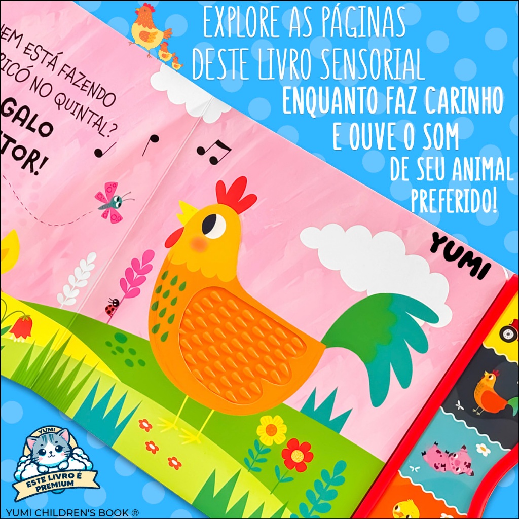 Livro Sensorial Bebê | Toque E Ouça Com 5 Sons E Texturas Animais da Fazenda | Premium Educativa