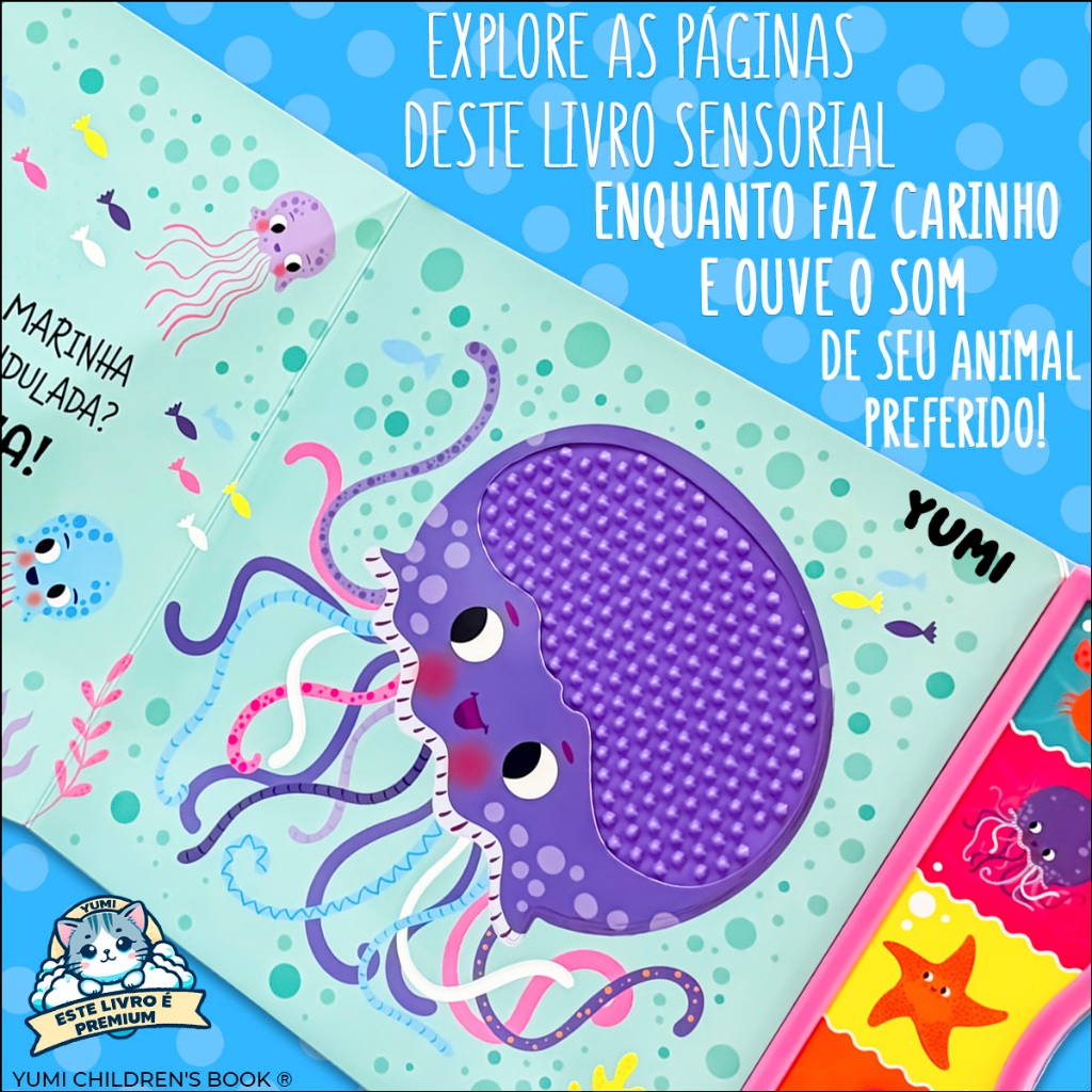 Livro Sensorial Bebê | Toque E Ouça Com 5 Sons E Texturas Silicone Animais Do Mar | Edição Premium