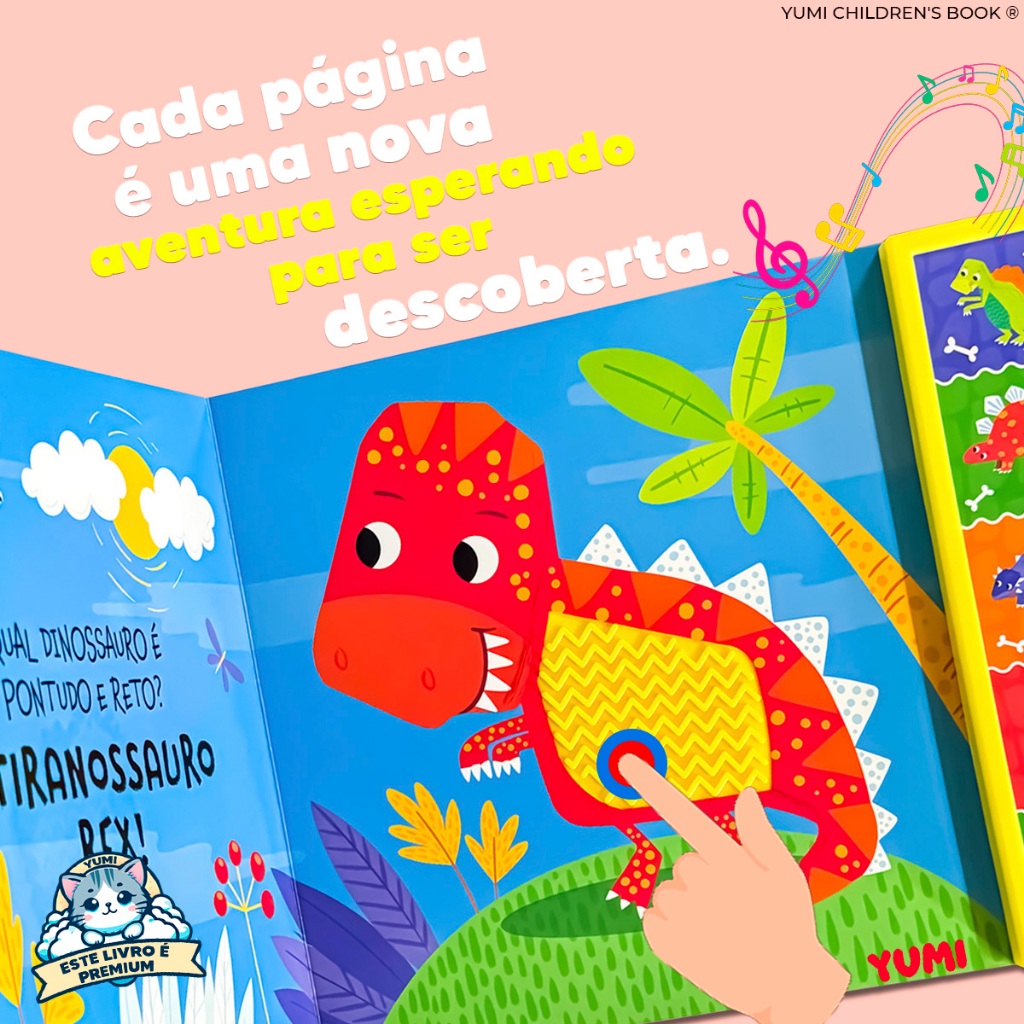 Livro Sensorial Bebê | Toque E Ouça Com 5 Sons E Texturas Silicone Dinossauros | Edição Premium