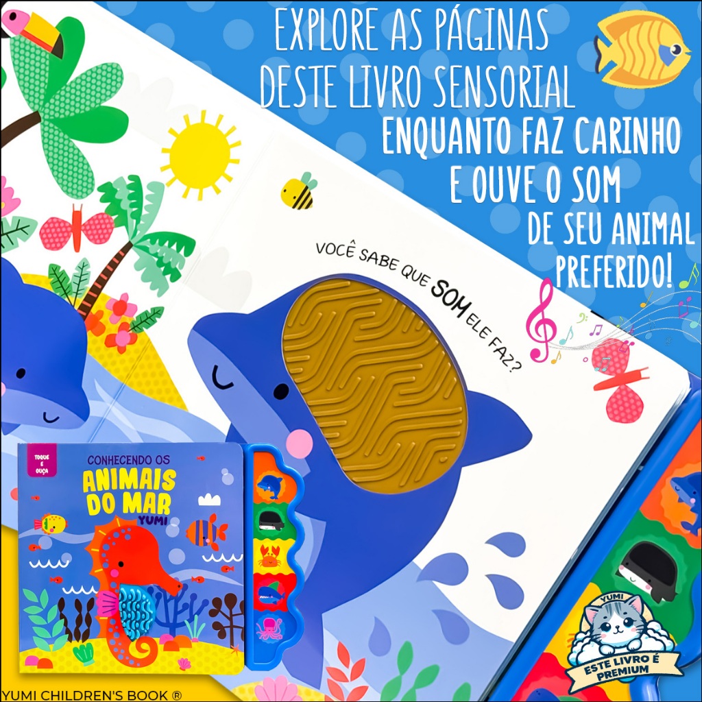 Livro Sensorial Bebê Toque E Ouça Com Sons E Texturas Animais Marinhos | Coleção Premium Educativa