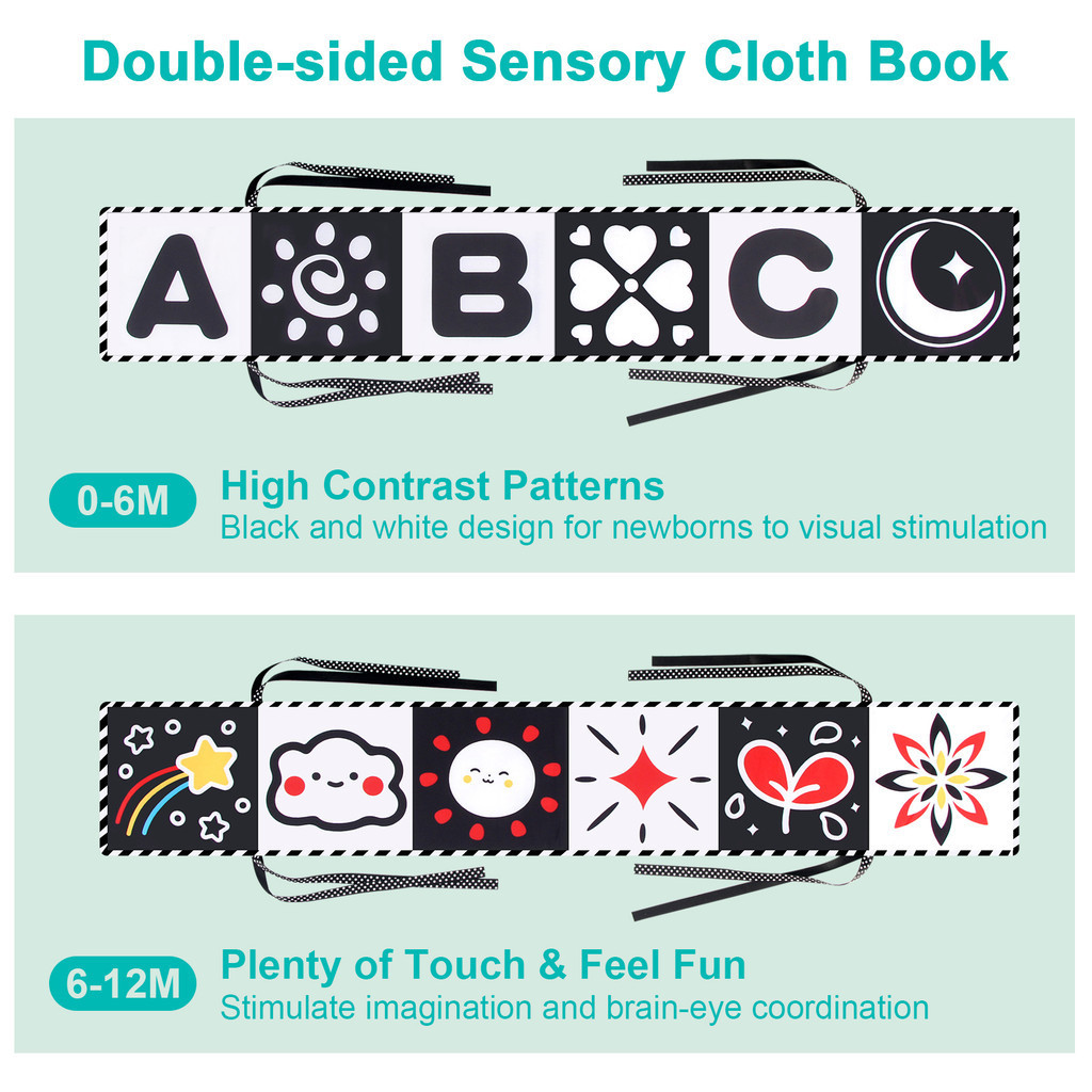 Livro Sensorial De Pano Macio Para Bebês Preto E Branco De Alto Contraste Brinquedos Tempo De Barriga Presente