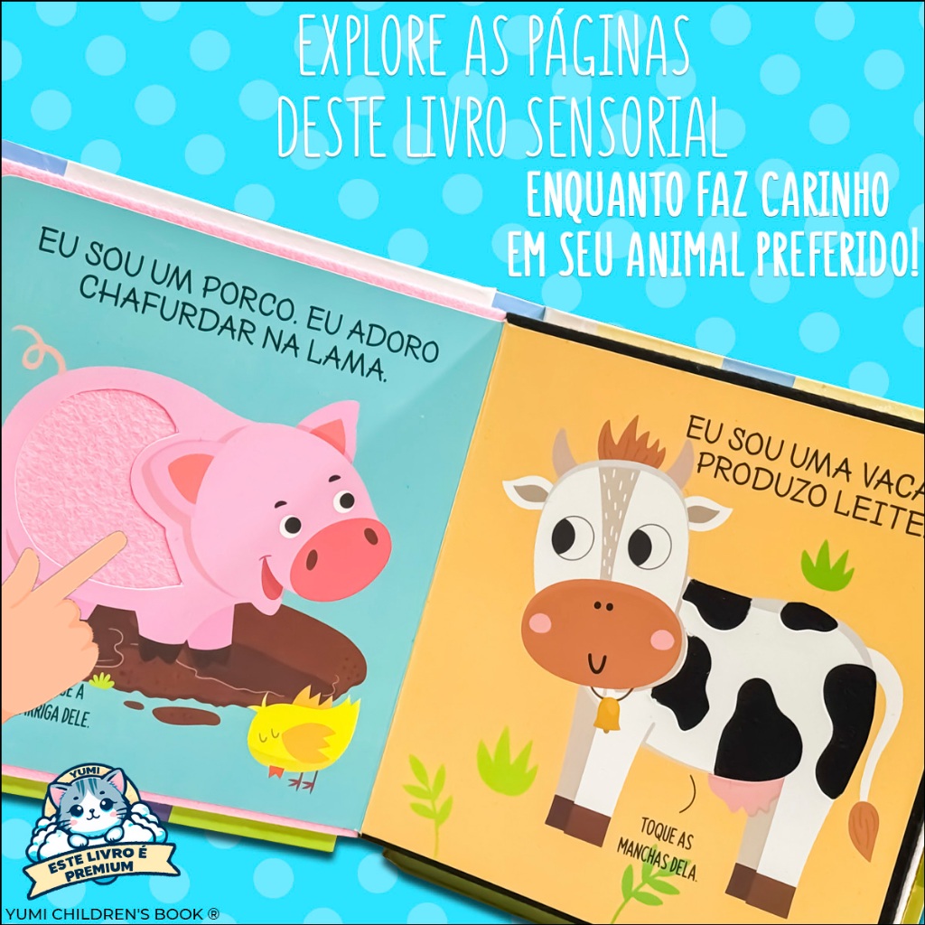 Livro Sensorial Toque e Sinta Na Fazenda - Para Bebê 0-1 Ano Texturas Macias de Feltro Capa Dura