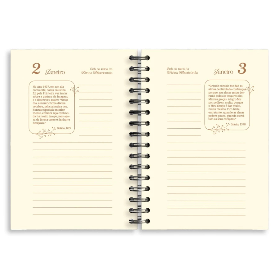 Este livro é mais do que um simples caderno; é um companheiro de caminhada para um ano de profunda espiritualidade e renovação. Inspirado nas mensagens de Santa Faustina Kowalska, você encontrará nele uma fonte constante de esperança, fé e motivação. Cada página foi cuidadosamente elaborada para oferecer uma reflexão diária baseada nos ensinamentos e na vida de Santa Faustina. Seus escritos, repletos de sabedoria e amor divino, servirão como guia e luz em sua jornada. À medida que você escreve suas experiências, desafios e momentos de alegria, deixe que as palavras de Santa Faustina inspirem e fortaleçam seu espírito. Permita que a misericórdia e a compaixão de Deus transformem cada dia, ajudando-o(a) a crescer em sua fé e em seu relacionamento com o Criador. Que este livro seja um refúgio de paz e uma oportunidade para aprofundar sua conexão com o Divino. Que cada mensagem de Santa Faustina seja um lembrete do amor imenso de Deus por você e da força que Ele oferece em cada momento de sua vida. ESPECIFICAÇÕES: ISBN: 9788594632197 Dimensões (cm): 11,50 X 18,50 x 2 Organizadora: Daniela Miranda Editora Divina Misericórdia e Canção Nova Idioma: Português Capa Dura Páginas: 416 Edição: 1ª Ano de Lançamento: 2024