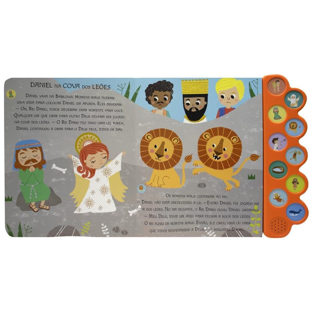 Com 10 módulos sonoros, este livro narra as Histórias da Bíblia de forma lúdica, despertando a imaginação e transmitindo valores cristãos, como amor ao próximo e aos ensinamentos divinos. 29x28 cm 10 Páginas