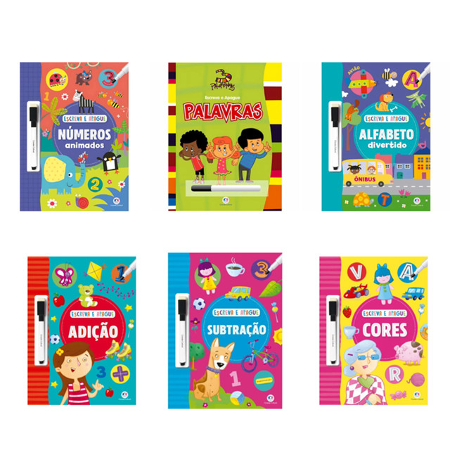 Livros Escreva e Apague Infantil - Alfabeto, Palavras, Adição, Subtração, Números Cores e Formas