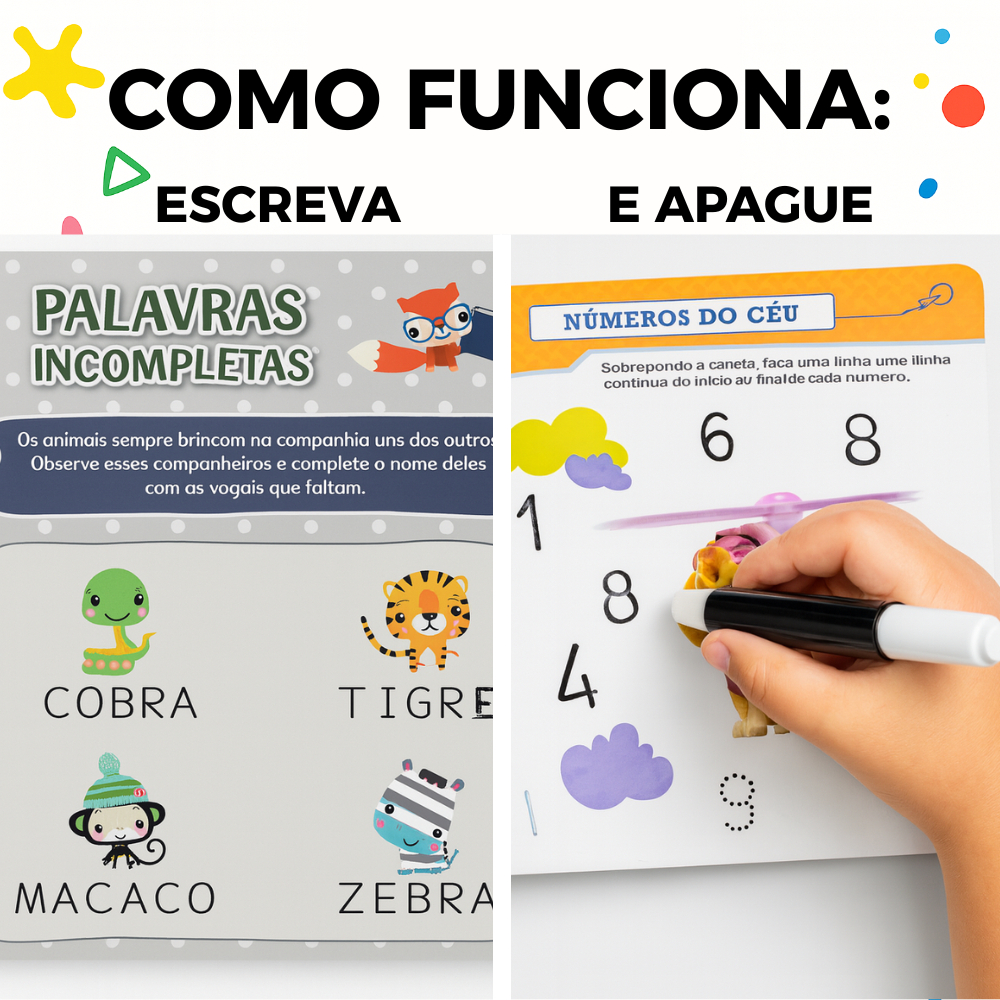 KIT 2 LIVROS MÁGICOS ESCRAVA E APAGUE 📚✨ Aprender brincando ficou ainda mais divertido! Esse Kit com 2 Livros Mágicos Escreva e Apague traz dois títulos irresistíveis: 🐾 Patrulha Canina – Letras e Números 🦊🦒 Fisher-Price – Animais Com páginas especiais que permitem escrever, apagar e repetir quantas vezes quiser, a criança desenvolve coordenação motora, concentração, reconhecimento de letras, números e animais — tudo isso de forma leve, colorida e super divertida! ✏️ O que seu pequeno aprende? 🧠 Raciocínio e associação ✍️ Traços iniciais e coordenação motora 🔤 Letras e números 🐾 Conhecimento sobre animais 🎨 Criatividade e imaginação 🔁 Reutilização ilimitada 📦 O que vem no kit? ✔️ 1 Livro Mágico Brincando com os Animais – Fisher-Price ✔️ 1 Livro Mágico Letras e Números – Patrulha Canina ✔️ 2 Canetinhas Escreva & Apague ✔️ Páginas grossas, resistentes e coloridas 🌟 Por que esse kit vende tanto? ✨ Muito mais aprendizado por um ótimo custo-benefício ✨ Livros licenciados oficiais ✨ Totalmente reutilizável ✨ Ótimo para alfabetização inicial ✨ Presente perfeito para crianças a partir de 3 anos ✨ Ideal para casa, escola e viagens 👶 Idade Recomendada A partir de 3 anos. Qualidade Garantida • Atendimento Humanizado • Envio Imediato 📦 PRONTA ENTREGA | ENVIO IMEDIATO Seu pedido é separado no mesmo dia com todo cuidado. 🚚 Entrega rápida para todo o Brasil Agilidade e segurança do início ao fim. 🔒 Compra protegida pela Shopee Receba exatamente o que pediu — ou seu dinheiro de volta. 💬 Atendimento LEO BABY Rápido, educado e sempre pronto para ajudar. 🏆 Produto aprovado por centenas de clientes Confiabilidade e qualidade que fazem a diferença. 💛 Adicione ao carrinho agora e garanta um aprendizado divertido para o seu pequeno!