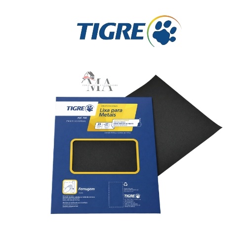 Lixa de Ferro Metal Tigre Grão 36, 40, 50, 60, 80, 100, 120, 150, 180, 220 | Superfície Metálica