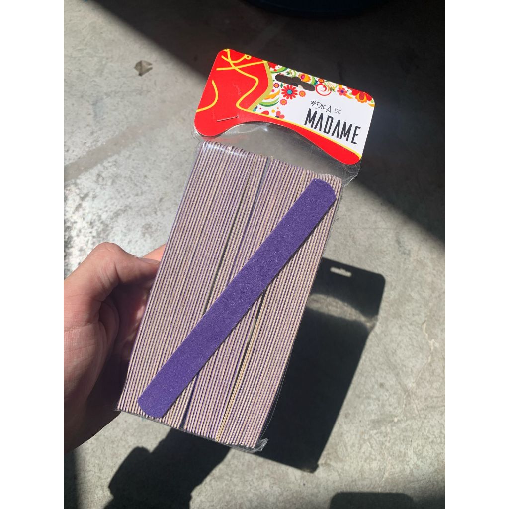 Lixa Americana para manicure e pedicure, ideal para corrigir imperfeições e dar formato as unhas. Para uso profissional ou doméstico. Características Gerais do Produto: Acompanha o produto: • 01 Pacote Lixa Americana Larga Roxa com 50un
