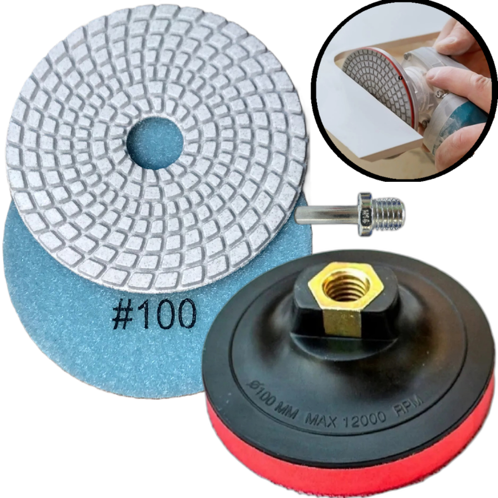 KIT LIXA DIAMANTADA COM SUPORTE PARA LIXA VELCRO COM ADAPTADOR PARA PARAFUSADEIRA M14 KIT IDEAL PARA TRABALHOS POLIMENTO PUXAR BRILHO EM PEDRA PORCELANATO ARDÓSIA PEDRA PROJETADA MÁRMORE CALCÁRIO MARMORARIA LIXA DE ALTA QUALIDADE NÃO DEIXA MANCHAS BENEFICIOS DA LIXA DIAMANTADA : A lixa diamantada oferece benefícios significativos ao ser utilizada para polimento e desbaste em diversos materiais, incluindo pedra, cerâmica mármore ardósia porcelanato etc.. Seus principais benefícios incluem alta durabilidade, capacidade de remoção eficiente de material e a habilidade de proporcionar um acabamento preciso e uniforme. Além disso, as lixas diamantadas são conhecidas por sua resistência ao desgaste, tornando-as ideais para tarefas de longa duração. CONTEÚDO DA EMBALAGEM : 01 LIXA DIAMANTADA 100mm 01 SUPORTE PARA LIXA COM VELCRO 100mm 01 ADAPTADOR PARA PARAFUSADEIRA M14