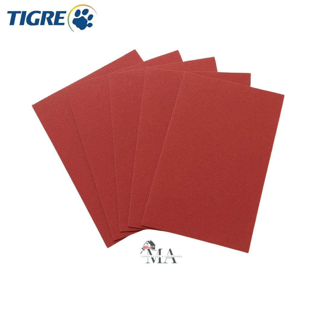 🦁 Lixa para Massa e Madeira Tigre – Profissional - ESCOLHA A QUANTIDADE QUE DESEJA A Lixa Tigre é desenvolvida para proporcionar acabamento perfeito em paredes, massa corrida, gesso e madeira, oferecendo alto desempenho e durabilidade superior. CARACTERÍSTICAS TÉCNICAS: - Marca: Tigre, - Tipo: Lixa para paredes, massa, gesso e madeira, - Granulação: disponível em diversas numerações (ex: 50, 60, 80, 100, 120, 150, 180, 220), conforme o tipo de acabamento desejado, - Cor: Vermelha, - Uso: Manual ou com suporte de lixamento Ideal para remoção de imperfeições, nivelamento de massa, lixamento de madeira, correção de irregularidades e preparo de superfícies antes da pintura Durabilidade: até 25% superior às lixas convencionais, mantendo o corte constante por mais tempo BENEFÍCIOS: - Alto poder de corte e acabamento uniforme, - Versátil: indicada para paredes, gesso, massa e madeira, - Resistente e flexível, ideal para uso profissional, - Reduz o empastamento e proporciona menor desgaste, - Melhor custo-benefício, com maior rendimento por folha APLICAÇÕES: - Paredes com massa corrida ou acrílica, - Superfícies de gesso e reboco, - Madeiras cruas, envernizadas ou preparadas para pintura, - Trabalhos de preparação antes do acabamento final