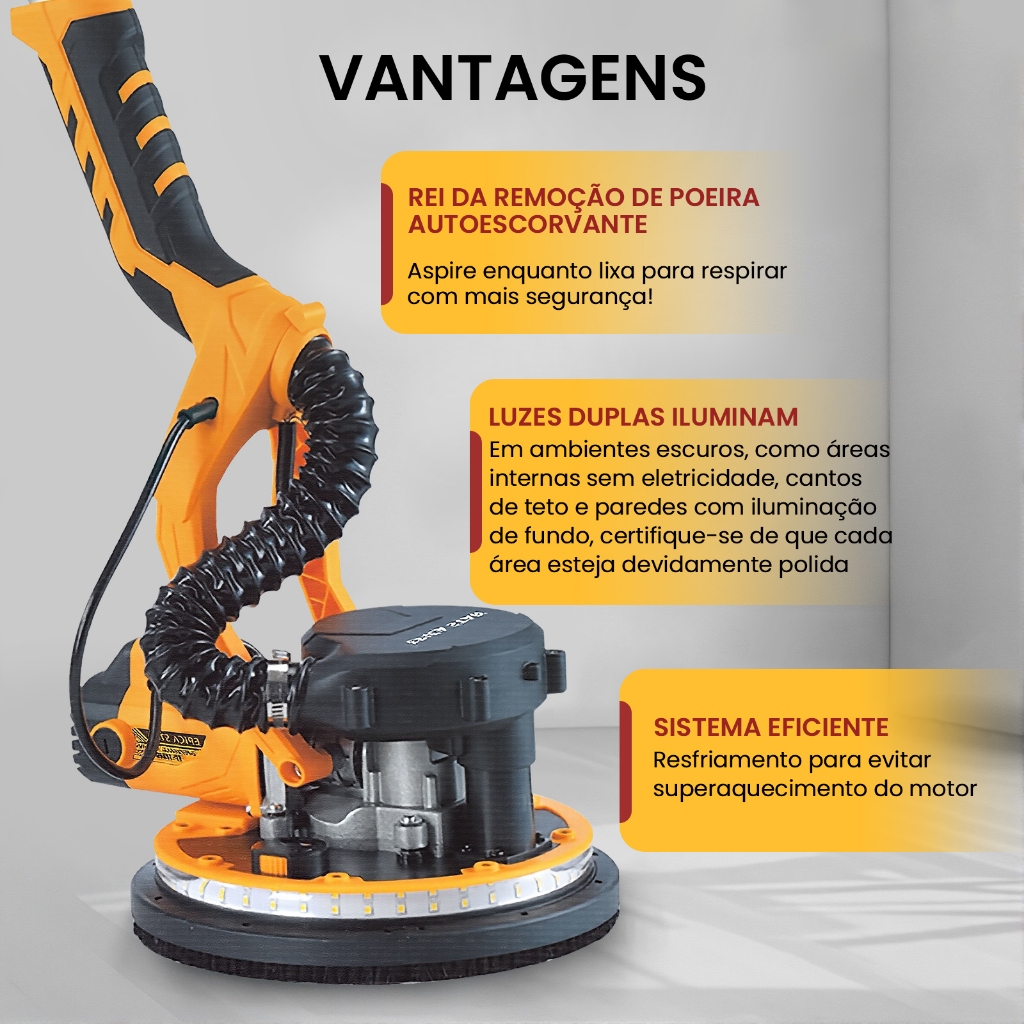Lixadeira Drywall 850W com LED e Aspiração - 175mm, 500-2300 RPM para Paredes e Tetos