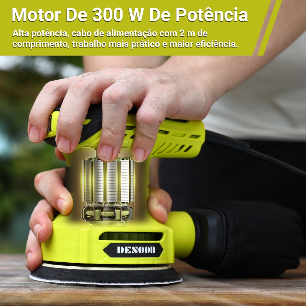 Lixadeira Elétrica Orbital Roto Professional 300W com Coletor de Pó 16 pcs lixas e Disco de Lixa 125mm