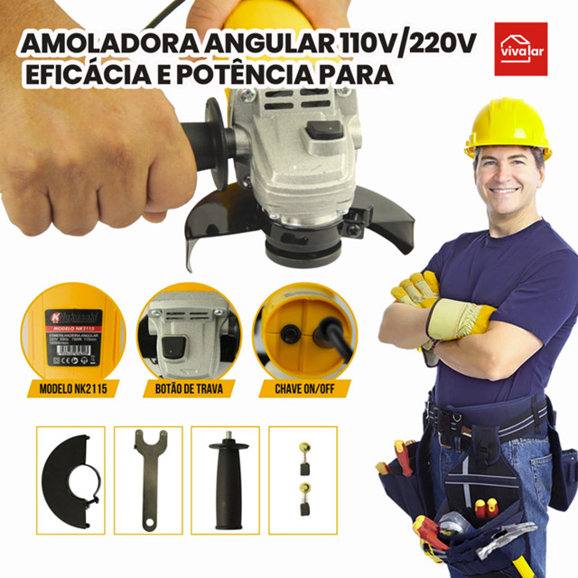Desbloqueie o máximo do seu potencial em trabalhos de construção e acabamento com este moedor de ângulo profissional. Equipado com um motor robusto de 900W de potência, esta ferramenta fornece torque e força consistentes para enfrentar tarefas exigentes de corte e desbaste, mesmo em materiais densos como concreto, metal e cerâmica. Sua alta velocidade de operação, atingindo 11.000 RPM (rotações por minuto), garante cortes limpos, rápidos e um lixamento uniforme, otimizando o tempo de trabalho e a qualidade do resultado final. A ferramenta aceita discos de 115mm (4.5 polegadas), um tamanho padrão e amplamente disponível, permitindo que você utilize uma grande variedade de discos de corte e lixa para diferentes aplicações: desde cortar barras de ferro e azulejos até remover tinta ou preparar superfícies para pintura. Um diferencial crucial é a opção de tensão: você deve selecionar no ato da compra o modelo configurado para 110V ou 220V, assegurando assim compatibilidade total e desempenho seguro com a instalação elétrica da sua oficina ou canteiro de obras. Pensado para o conforto durante longos períodos de uso, seu design é compacto e ergonômico. O cabo e o corpo principais são projetados para proporcionar uma empunhadura firme e reduzir a vibração transferida para as mãos, minimizando a fadiga e permitindo um controle preciso em cada movimento. Seja para um profissional que depende de ferramentas confiáveis no dia a dia, seja para um entusiasta de projetos caseiros (DIY) que valoriza precisão, esta é uma solução completa e eficiente. O produto é entregue pronto para uso, acompanhado de seu manual de instruções.