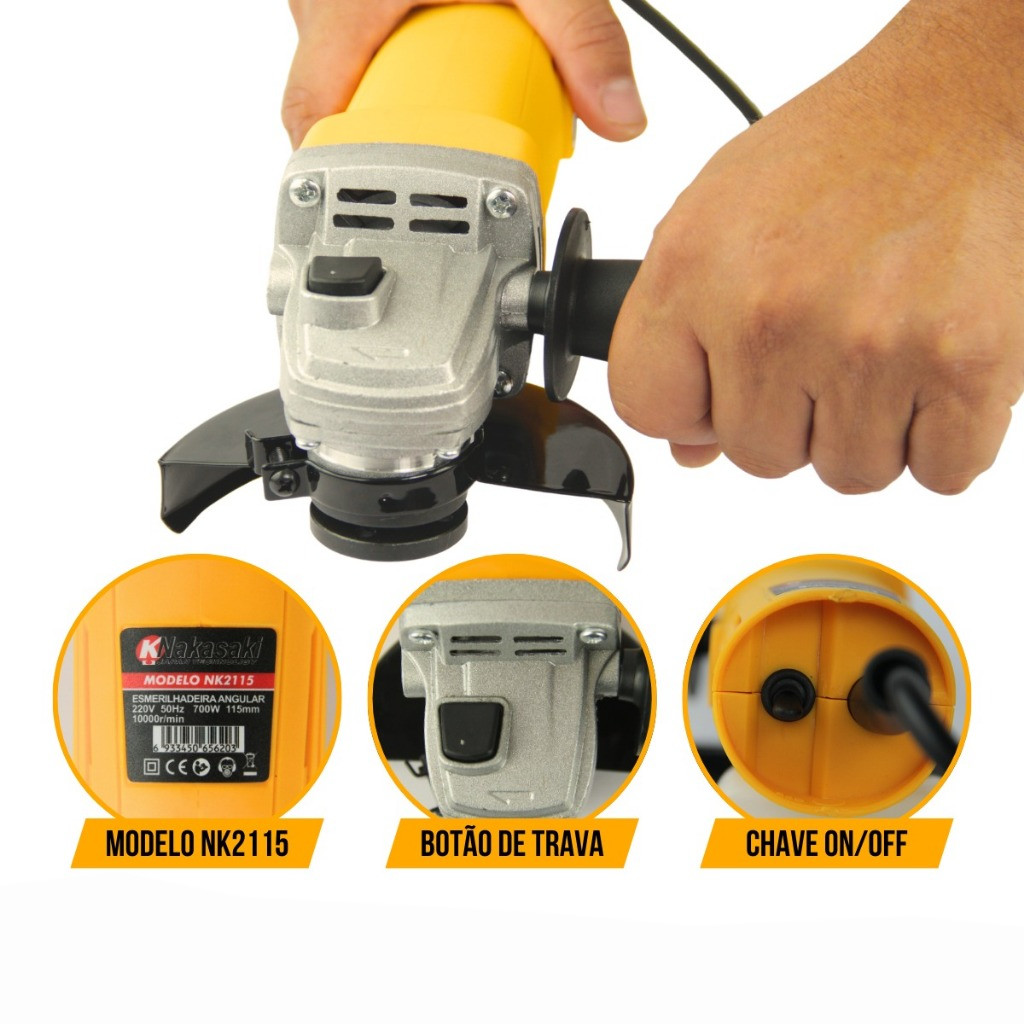 Desbloqueie o máximo do seu potencial em trabalhos de construção e acabamento com este moedor de ângulo profissional. Equipado com um motor robusto de 900W de potência, esta ferramenta fornece torque e força consistentes para enfrentar tarefas exigentes de corte e desbaste, mesmo em materiais densos como concreto, metal e cerâmica. Sua alta velocidade de operação, atingindo 11.000 RPM (rotações por minuto), garante cortes limpos, rápidos e um lixamento uniforme, otimizando o tempo de trabalho e a qualidade do resultado final. A ferramenta aceita discos de 115mm (4.5 polegadas), um tamanho padrão e amplamente disponível, permitindo que você utilize uma grande variedade de discos de corte e lixa para diferentes aplicações: desde cortar barras de ferro e azulejos até remover tinta ou preparar superfícies para pintura. Um diferencial crucial é a opção de tensão: você deve selecionar no ato da compra o modelo configurado para 110V ou 220V, assegurando assim compatibilidade total e desempenho seguro com a instalação elétrica da sua oficina ou canteiro de obras. Pensado para o conforto durante longos períodos de uso, seu design é compacto e ergonômico. O cabo e o corpo principais são projetados para proporcionar uma empunhadura firme e reduzir a vibração transferida para as mãos, minimizando a fadiga e permitindo um controle preciso em cada movimento. Seja para um profissional que depende de ferramentas confiáveis no dia a dia, seja para um entusiasta de projetos caseiros (DIY) que valoriza precisão, esta é uma solução completa e eficiente. O produto é entregue pronto para uso, acompanhado de seu manual de instruções.