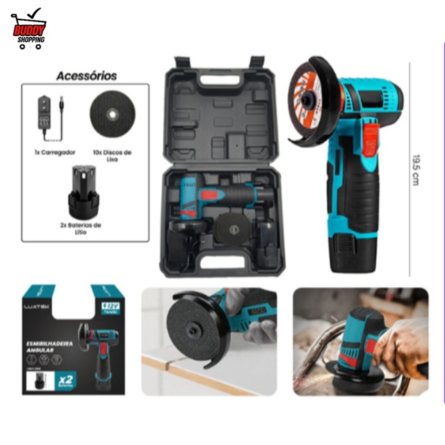 Catalogado na subcategoria Ferramentas (de Casa e Construção), Lixadeira Esmerilhadeira Angular Portátil Recarregável 2 Baterias 12v 10 Discos De 3" Luatek LWJ-286 está à venda na Shopee Brasil por R$ 139,99 (75% de desconto sobre o preço original de R$ 559,96).