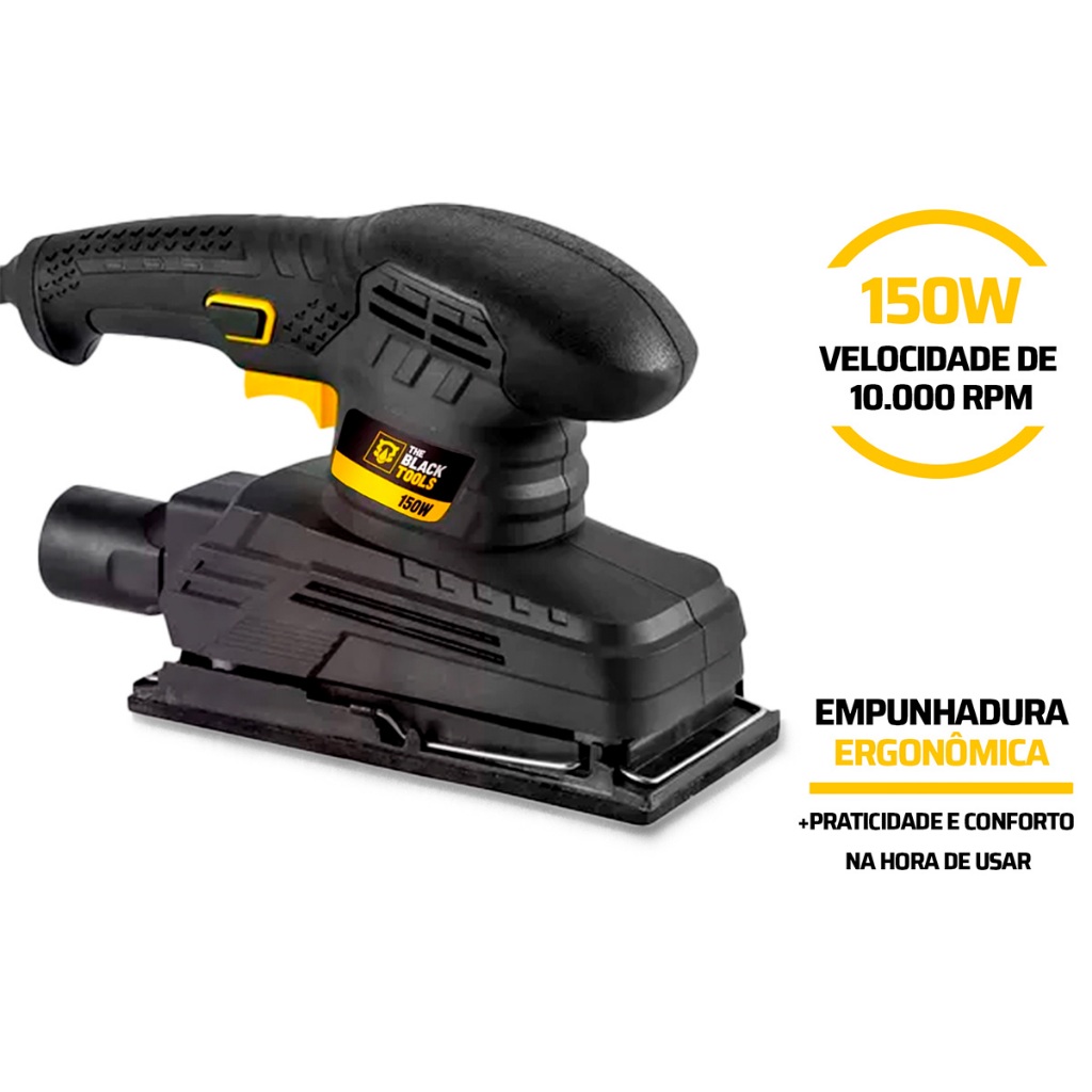 Lixadeira Orbital Elétrica 1/3" Pol 10000 Rpm 150w Cor Preto The Black Tools
