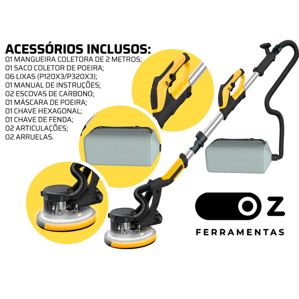 Lixadeira Teto E Parede Telescópica Profissional C/ Led E Saco Coletor 60hz