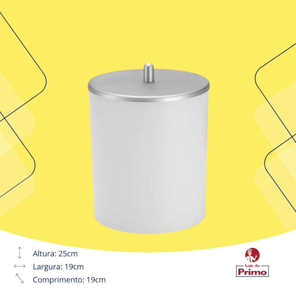 Lixeira com Tampa em PSAI Alto Impacto - Branco com Tampa Prata Descrição: A Lixeira com Tampa em PSAI Alto Impacto da Arthi é prática e resistente, ideal para uso em ambientes como cozinhas, banheiros, escritórios ou áreas de serviço. Com design moderno, a lixeira apresenta uma combinação de cores elegante, azul com tampa prata, que se integra facilmente a diversos estilos de decoração. Fabricada em poliestireno de alto impacto, oferece durabilidade e resistência no dia a dia. Características: Marca: Arthi Material: Poliestireno de Alto Impacto (PSAI) Cor: Branco com tampa prata Dimensões: Diâmetro: 19 cm Altura: 25 cm Peso: 360 gramas Garantia: 3 meses Benefícios: Design Funcional: Compacta e prática, perfeita para ambientes pequenos e médios, mantendo o local organizado e limpo. Durabilidade: Fabricada em poliestireno de alto impacto, material que garante resistência e longa vida útil ao produto. Fácil Manuseio: A tampa facilita o uso e mantém o conteúdo da lixeira escondido, garantindo a higiene e o visual organizado. Estilo Versátil: A combinação de azul com prata oferece um visual moderno e discreto, que se adapta bem a diferentes ambientes. Cuidados: Limpeza: Limpar com pano úmido e sabão neutro. Evitar o uso de produtos abrasivos para não danificar o material e as cores. Uso Sugerido: Ambientes Internos: Cozinhas, banheiros, escritórios e áreas de serviço, para coleta de lixo de maneira prática e organizada. Com a Lixeira com Tampa em PSAI Alto Impacto da Arthi, você garante praticidade, durabilidade e estilo para o seu ambiente, mantendo-o sempre limpo e organizado.