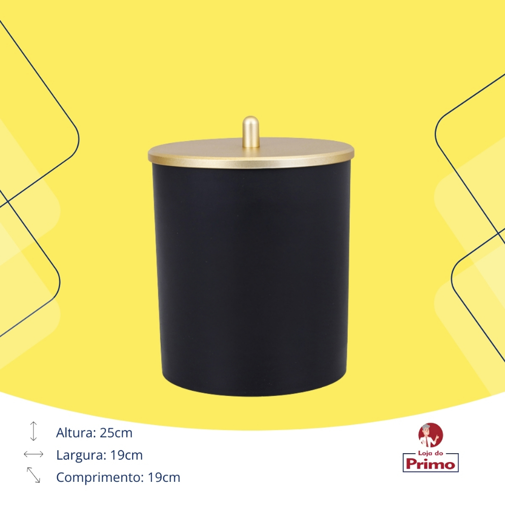 Lixeira 5 Litros - Linha Conceito - Preto com Tampa Dourada Descrição: A Lixeira 5 Litros da Linha Conceito da Arthi combina praticidade e sofisticação para compor o seu ambiente. Com um design elegante, ela apresenta acabamento em preto com tampa dourada, ideal para quem busca um toque moderno e luxuoso. Feita em poliestireno de alto impacto, é resistente e perfeita para uso diário em diversos espaços, como cozinhas, banheiros e escritórios. Características: Marca: Arthi Linha: Conceito Material: Poliestireno de Alto Impacto (PSAI) Cor: Preto com tampa dourada Dimensões: Diâmetro: 19 cm Altura: 25 cm Capacidade: 5 litros Benefícios: - Estilo Sofisticado: A combinação de preto com dourado confere um toque moderno e sofisticado, se adaptando bem a qualquer tipo de decoração. - Material Resistente: Fabricada em poliestireno de alto impacto, a lixeira é robusta e durável, suportando o uso diário com eficácia. - Praticidade e Funcionalidade: Compacta e leve, é fácil de transportar e perfeita para espaços pequenos, mantendo o ambiente sempre limpo e organizado. - Tampa Discreta: A tampa oculta os resíduos e ajuda a controlar odores, mantendo a aparência organizada e higiênica do espaço. Cuidados: - Limpeza: Limpar com pano úmido e detergente neutro. Evitar produtos abrasivos para preservar o material e o acabamento dourado. Uso Sugerido: - Ambientes Internos: Ideal para cozinhas, banheiros, escritórios ou áreas de serviço, oferecendo uma solução prática e elegante para o descarte de resíduos. Com a Lixeira 5 Litros da Linha Conceito da Arthi, você adiciona um toque de elegância e funcionalidade ao seu ambiente, mantendo-o sempre organizado e estiloso.