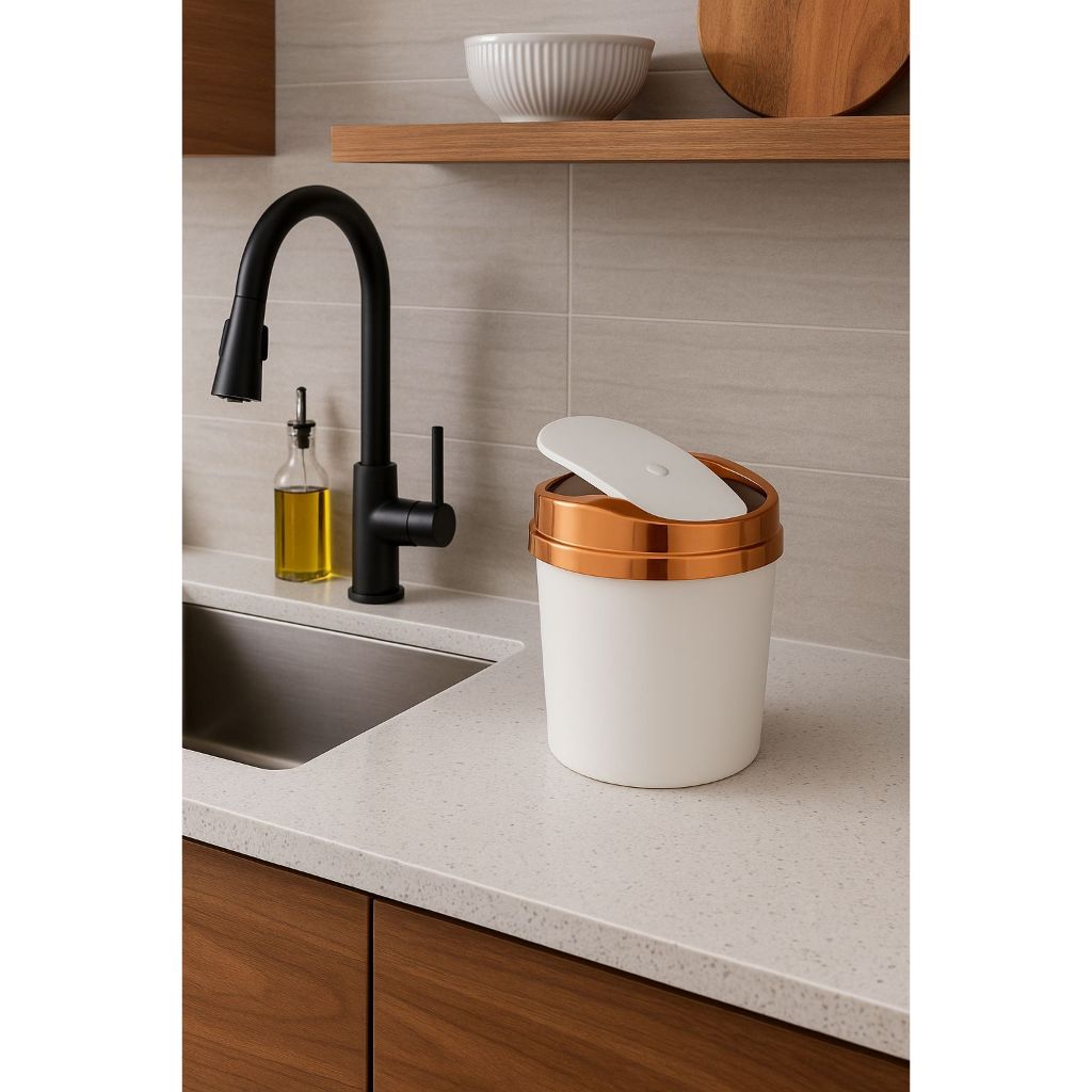 Lixeira 5 Litros Tampa Basculante Rose Gold Banheiro Cozinha