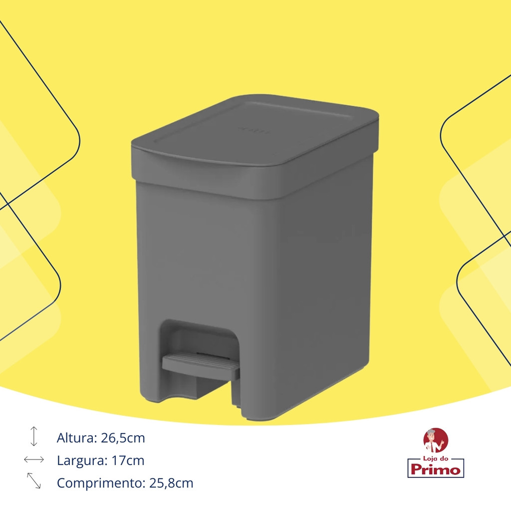 Lixeira 6 Litros Banheiro Cozinha Escritório Lavabo Esconde Saco Trium Cinza Chumbo OU