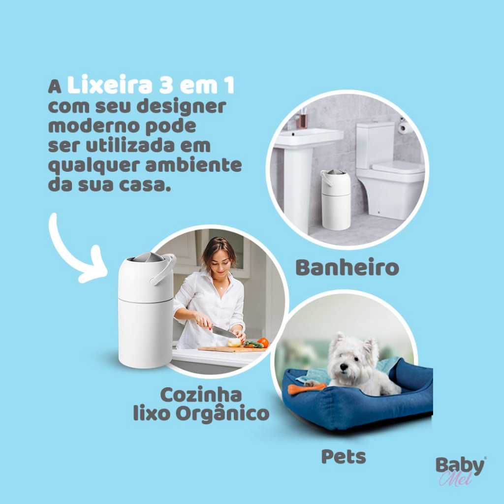 Lixeira Antiodoor 3 em 1 Pet e Bebe