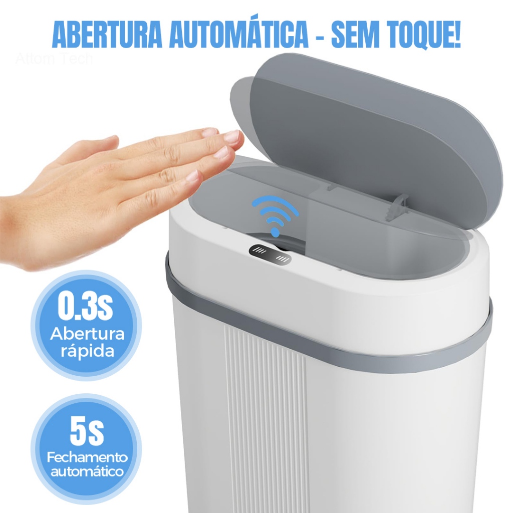 Lixeira Automática 12L com Sensor Inteligente – Abertura Sem Toque, Design Moderno para Cozinha, Banheiro e Escritório
