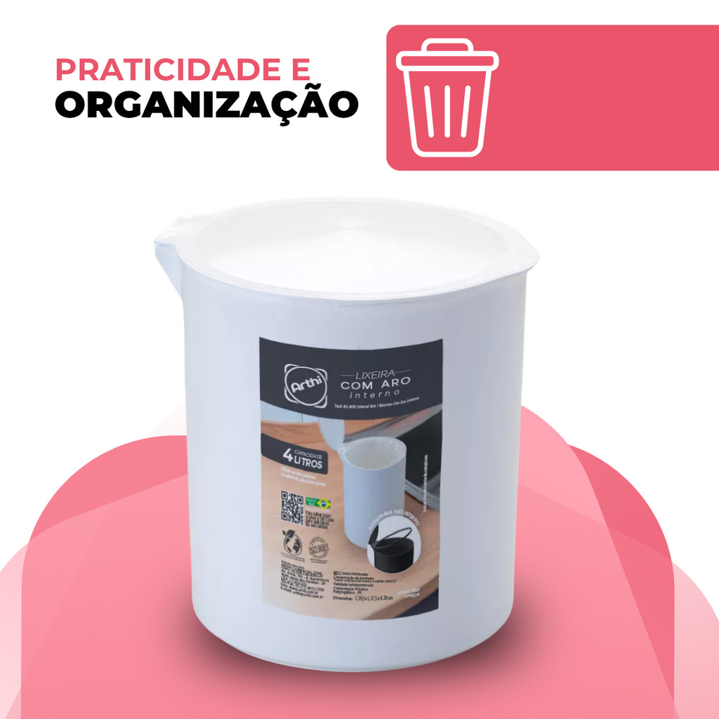 Lixeira Banheiro Escritorio Cozinha Lavabo 4 Litros Com Aro Interno Plástico Arthi