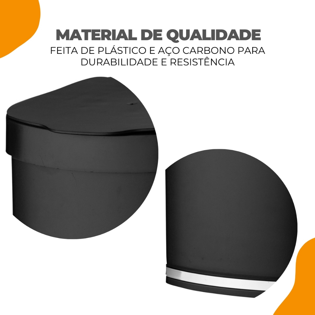 Lixeira Basculante Escritório 2,5 Litros Cozinha Banheiro Lavabo Pia Com Tampa Preto Cromado Future