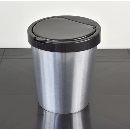 Lixeira/Cesto Tipo Inox Com Tampa Click - 10 Litros Prata Banheiro - Para Cozinha ,Quarto, Escritório e Banheiro - TOY