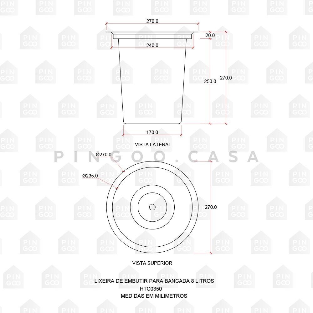 Lixeira De Embutir Para Bancada 8 Litros Aço Inox 201 Pingoo - Dourado Escovado