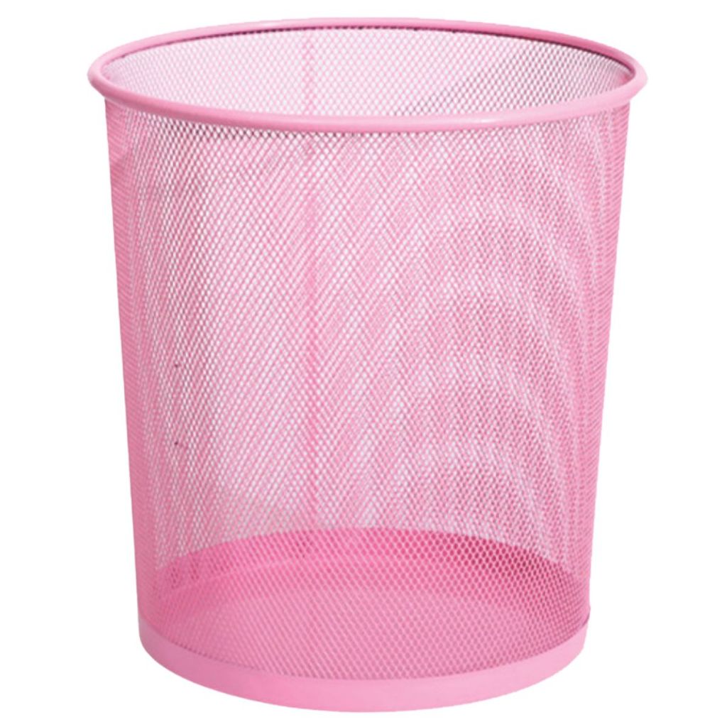 Lixeira de Metal Malha Aramado Cesto de Lixo Redonda Candy Color Escritório Casa Quarto