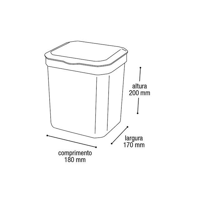 Cesto de lixo de 5 litros Rattan preto com tampa Características Gerais do Produto: ? Marca: Arqplast ? Material: PP ? Cor: preto ? Dimensões: 20 x 18 x 17 cm