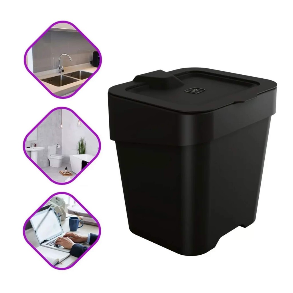Lixeira de Pia Slim 2,5 Litros Preto UZ Utilidades - UZ420-PR