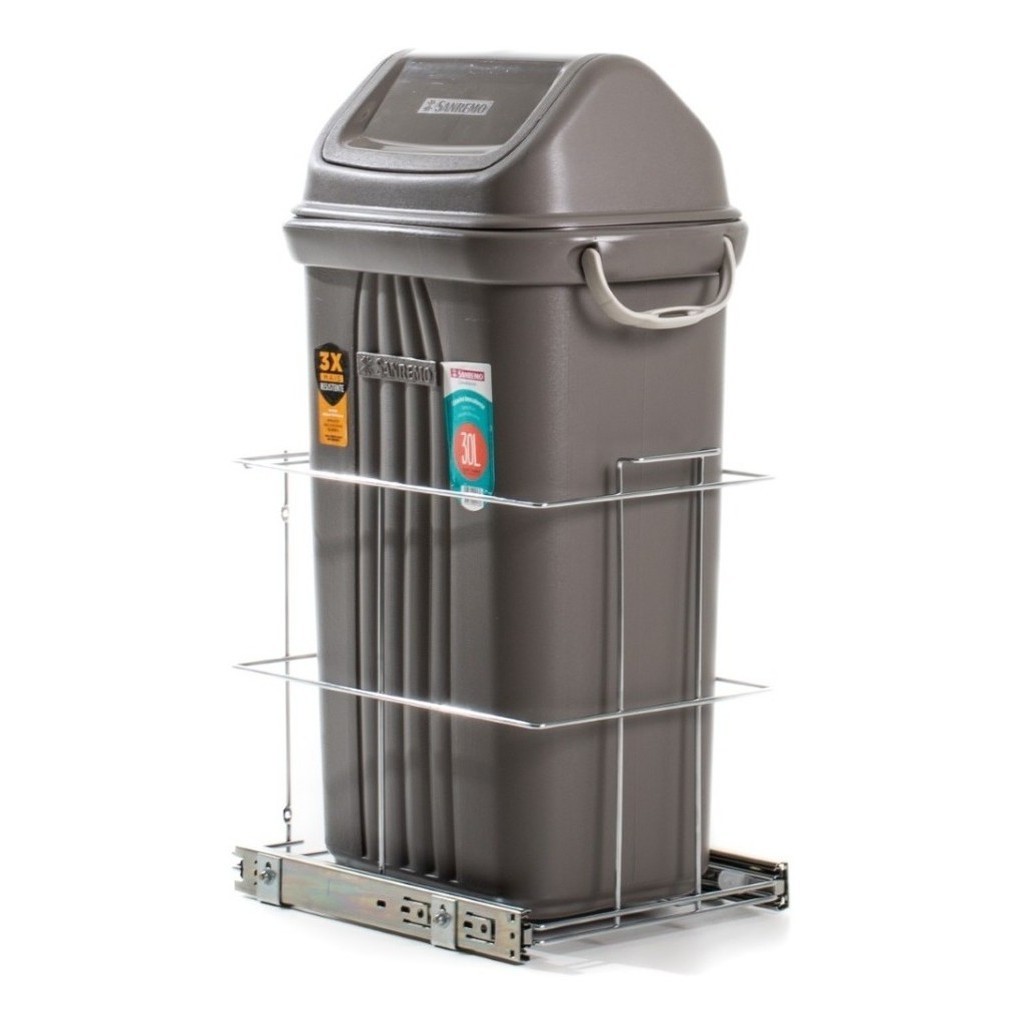 Lixeira Deslizante 30 Litros De Embutir Telescópica Aramada