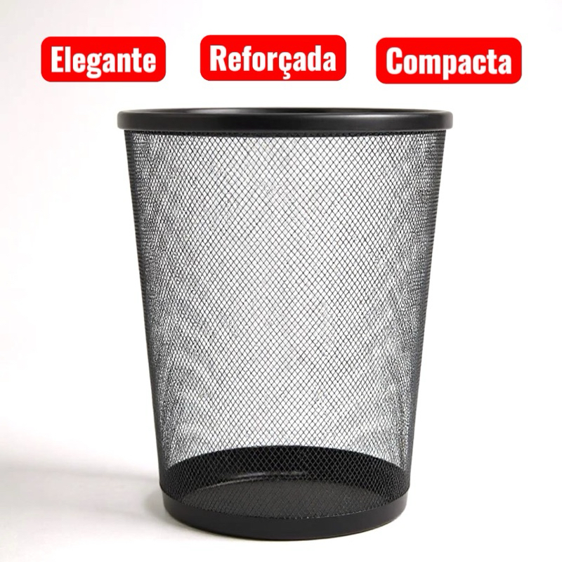 Lixeira grande 16L Metal Aramado-Cesto de lixo Redonda P/Escritorio-Lixeira cesto lixo-kit escritório organizador mesa
