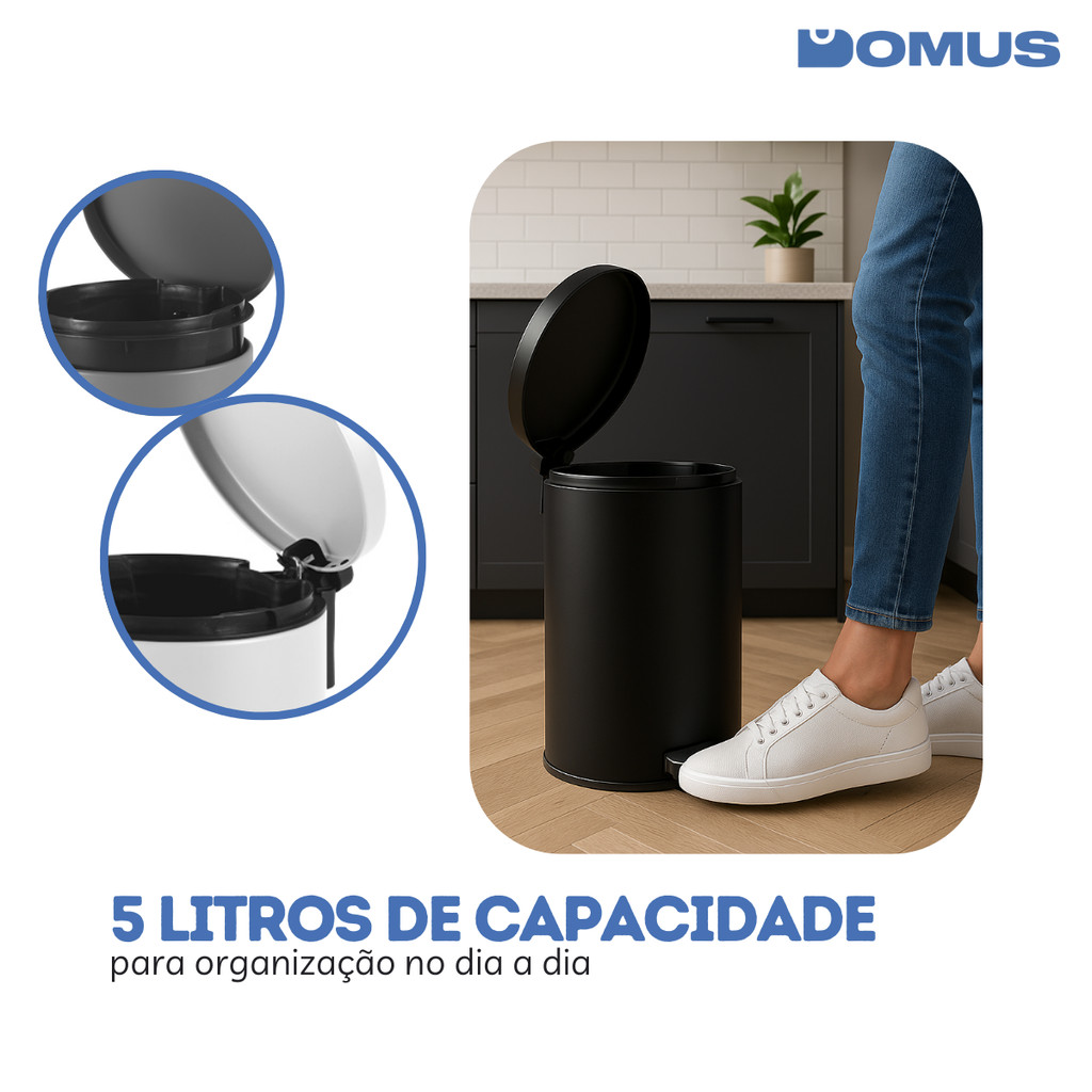 ***PRODUTO A PRONTA ENTREGA COM ENVIO IMEDIATO*** ITEM ORIGINAL COM NOTA FISCAL Somos a Domus, Loja oficial da Shopee. Temos 5 anos de experiência em E-Commerce e nosso maior objetivo é garantir a satisfação dos nossos clientes! Lixeira Redonda com Pedal 3 Litros Cinza Powermaid A Lixeira Redonda com Pedal 3L da Powermaid oferece funcionalidade e um toque moderno para qualquer ambiente. Produzida em aço pintado e polipropileno, garante resistência, leveza e fácil higienização. O sistema de abertura com pedal evita o contato direto com a tampa, proporcionando mais praticidade e higiene no dia a dia. Compacta e discreta, é perfeita para banheiros, cozinhas, escritórios ou áreas de serviço. Material: Aço pintado e polipropileno Cor: Cinza Capacidade: 3 Litros