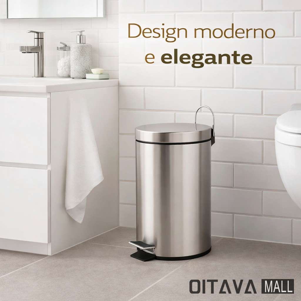 Lixeira Inox Aço 3 litros C/ Pedal Cesto Interno Removível Banheiro Cozinha