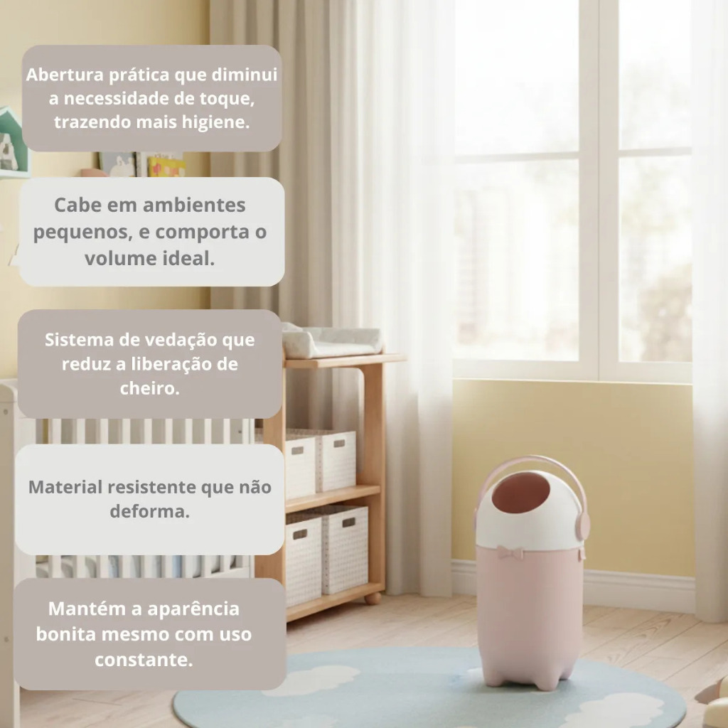 Lixeira Mágica para Fraldas 10L Anti Odor – Lixeira para Bebê com Tampa Vedada | Rosa, Branco ou Azul
