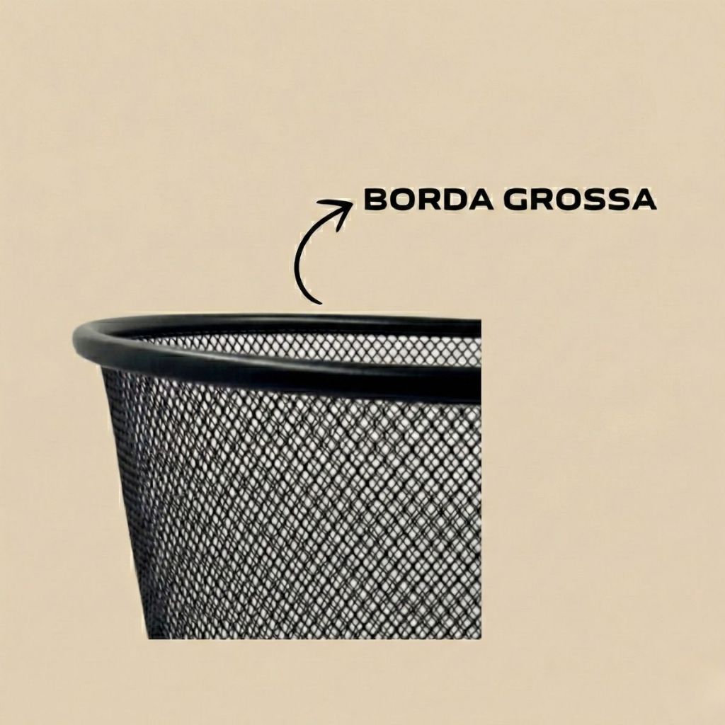 Lixeira Metal Aramado Borda Grosas Cesto de lixo 10L Preta Redonda Para Escritorio Casa Quarto